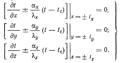 симметричных условий теплообмена на противоположных гранях: