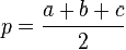 треугольника;Полупериметр, который рассчитывается по формуле: