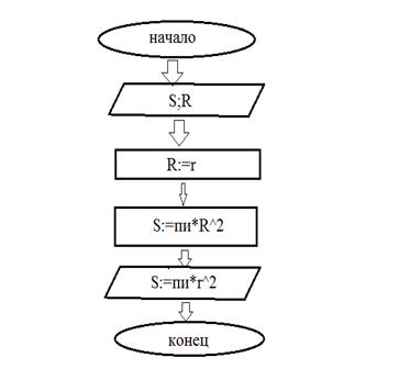 нахождения площади круга нужно ввести радиус. Он вводится в переменную R, нужно