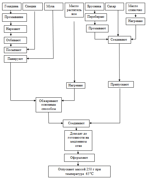 Таблица 6.1- Аппаратурное оформление технологического процесса приготовления блюда «Говядина с брусникой».