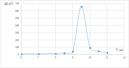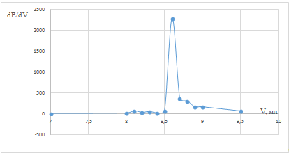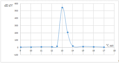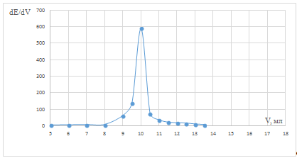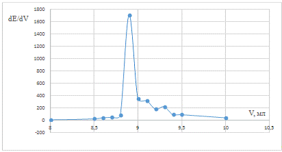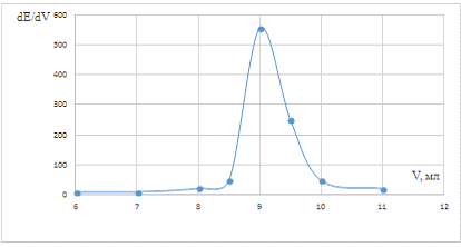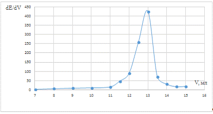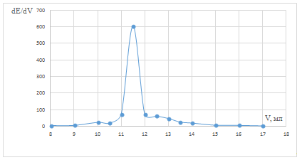 точки эквивалентности рассчитывали и строили дифференциальную зависимость dE/dV