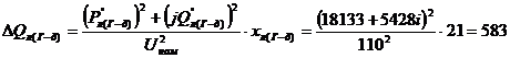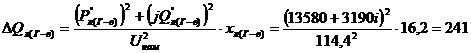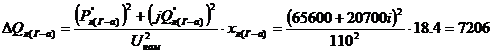 Необходимая мощность компенсирующих устройств приемной подстанции “а» с учетом резерва, в послеаварийном режиме - увеличение на 15%: