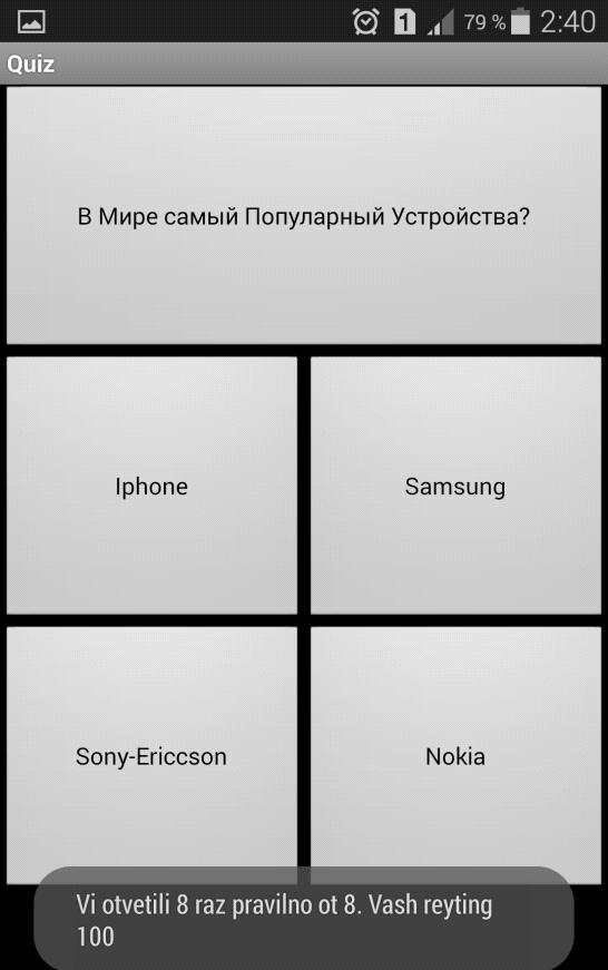 }void LoadQuestion() {qs=(int)System.currentTimeMillis()%QUESTIONS;.setText(Ques[qs]);(int i=0;i<VARIANTS;i++){[i].setText(AnsMatrix[i][qs]);
