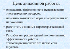 ) Выполнен обзор литературы по теме дипломной работы который показал большую значимость этого направления в развитии населенного пункта Шуйское.В 2010 году ГосДума РФ приняла закон о «Теплоснабжении». Состоящий из семи глав в которых 30 статей. Общее положение в котором подразумевает. Предмет регулирования настоящего Федерального закона. Основные понятия, используемые в настоящем Федеральном законе. Общие принципы организации отнощений и основы государственной политики в сфере теплоснабжения.
