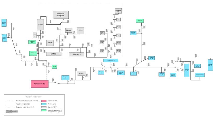 Схема тепловой сети первого участка поселка