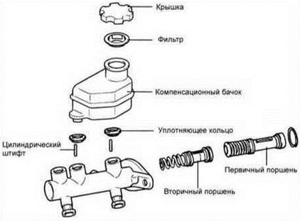 секциями главного тормозного цилиндра через гибкие трубки. Резервуар необходим