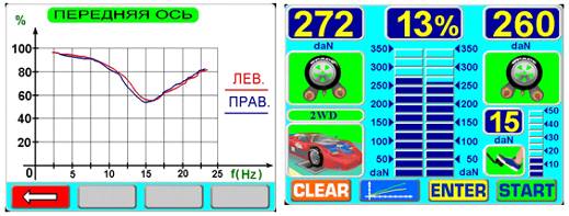 После того, как в память компьютера введены все данные и автомобиль сошел с роликового агрегата, на экране монитора появляется страница с итоговыми результатами испытаний всей тормозной системы (рис. 3.2.).