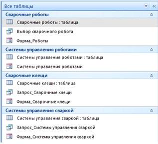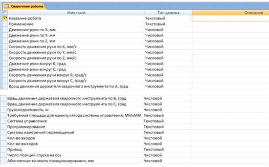 Рис.3 Структура таблицы “Сварочные роботы”