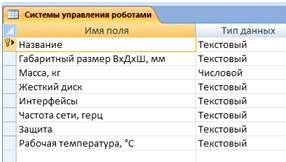 Рис.5 Структура таблицы “Системы управления роботами”