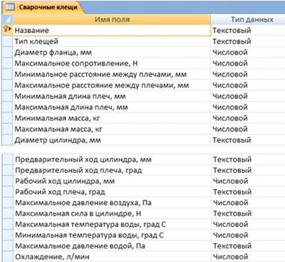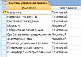Рис.9 Структура таблицы “Системы управления сваркой”