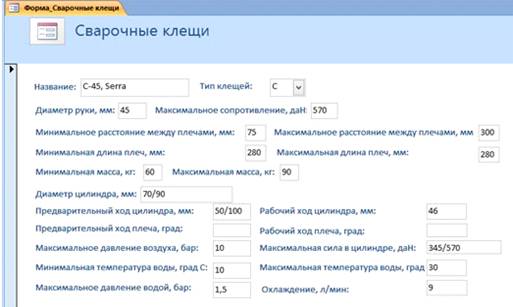 .3 Информационная модель сварочных клещей