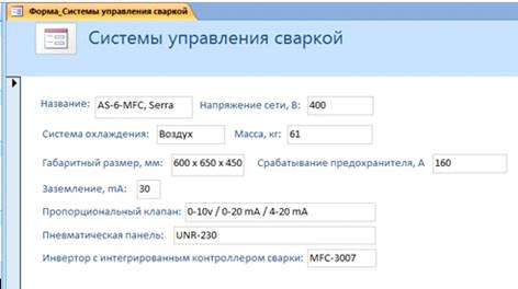 Для выбора систем управления сваркой из таблицы был разработан запрос на выборку.