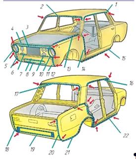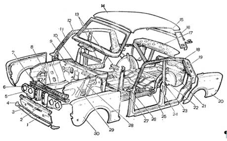 На след рис представлен состав деталей кузова