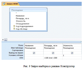 Тип запроса-выборки: с логическим ИЛИ, связывающим два числовых поля.