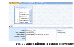 помещения» и «Площадь помещения». Результатом запроса является увеличение