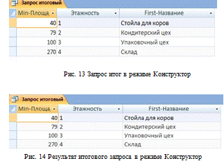 Запросы выполняется на основании таблицы «Помещение», используя поля «Площадь»,