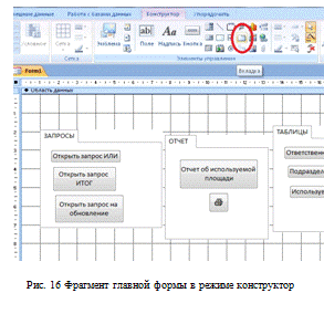 приступить к созданию кнопочной формы используем режим Конструктор.