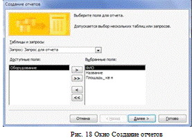 Для создания отчета используется команда Создание/Мастер отчетов на вкладке Отчеты.