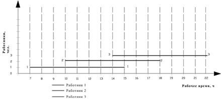Принимаем количество работников 3 человека.