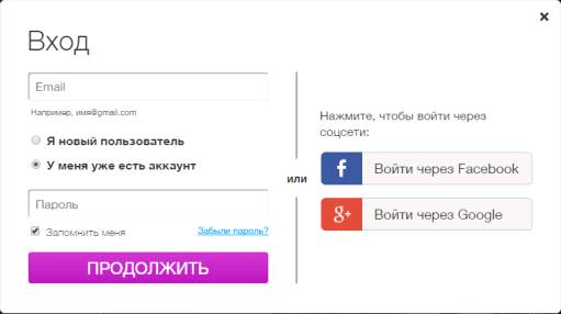 В качестве альтернативы можно использовать возможность войти при помощи учетной записи на одном из социальных сервисов Facebook или Google+. В этом случае просто нужно будет подтвердить разрешение на подключение к аккаунту.