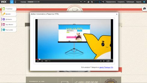 При открытии шаблона, появляется окно с видео, которое кратко рассказывает и показывает возможности редактора.