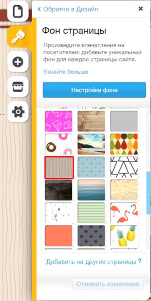 Для редактирования фона нашего сайта, заходим во вкладку Фон,