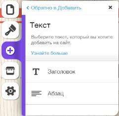 Верхняя панель служит больше для различных настроек и публикации сайта. С ее помощью можно: