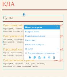 открывшимся окне Меню ресторана, выбираем пунктРедактировать меню.