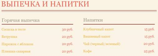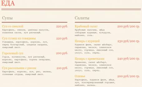 Основное меню - здесь представлено основное меню кафе Family с ценой, весом и
