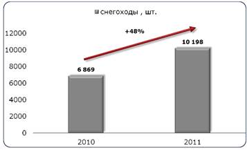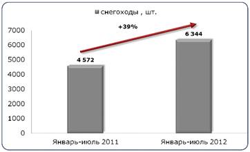 По итогам 2011 года импорт снегоходов в натуральном выражении увеличился на 54,2%.