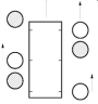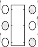 Моделью с шестью ногами мы сможем продемонстрировать знаменитую походку «треножником», т е. с опорой на три ноги, которую используют большинство существ. На следующих рисунках темный кружок означает, что нога устойчиво поставлена на землю и поддерживает вес существа. Светлый кружок означает, что нога поднята и находится в движении. На Рис 1.1 показано существо в позиции «стояния». Все ноги опираются о землю. Из положения «стояния» существо решает идти вперед.