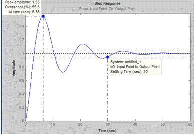 Рис. 3.8 Реакция системы на единичное ступенчатое воздействие