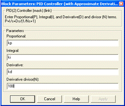 Рис. 3.6 Параметры ПИД регулятора PID Controller
