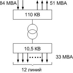 Число отходящих линий 12НАГРУЗКИ 33МВА