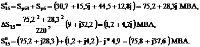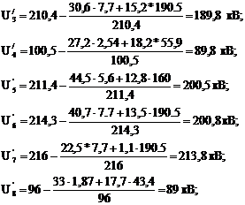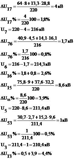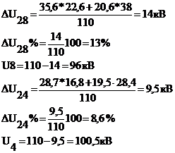 Расчёт уровней напряжения. Рассчитаются потери напряжения участков линии с учетом, что напряжение на шинах источника питания при авариийных нагрузках-1Uн