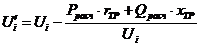 Регулирование напряжения в послеаварийном режиме. Определяется напряжение на шинах НН i-го пункта, приведенное к стороне ВН: