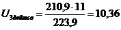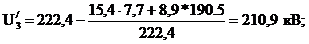 где Ui' -напряжение на шинах НН i-го пункта, приведенное к стороне ВН, кВ, Uхх = 11кВ- напряжение холостого хода трансформатора, кВ,