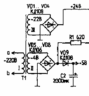 1) Напряжение питания микросхем - 5 В;
