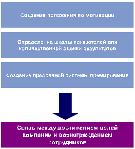 разработка инструмента для реализации стратегии развития компании. Система мотивации персонала, если она основана на целевых показателях управления или KPI, становится не просто инструментом мотивации персонала к работе на результат, а системой, которая фокусирует работу всего персонала на реализации стратегических задач компании;