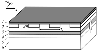 меньшим показателем преломления. Металлический слой 1 и слой GaAs 6 являются обкладочными,