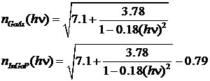 Дисперсия показателя преломления коротковолновых мод для GaAs и InGaP может быть описана следующими выражениями [11]: