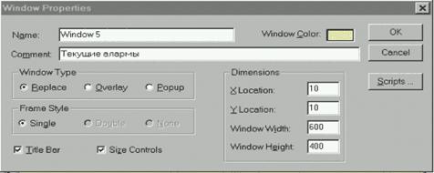 Диалог Window Properties (Свойства окна). Примечание: [составлено автором]