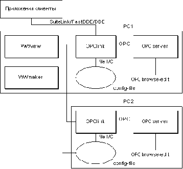 Поставляемый в комплекте FactorySuite (Wonderware) OPCLink Server обеспечивает