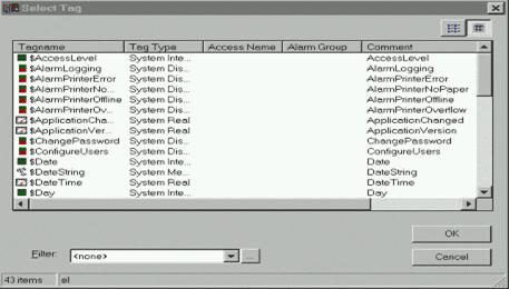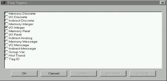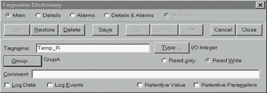 типа переменной программа возвращает пользователя в диалог Tagname Dictionary