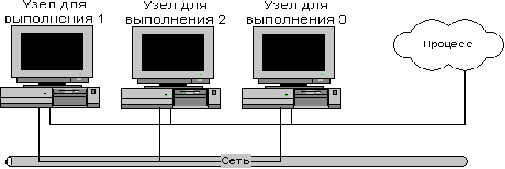 узла исполняют идентичные копии одного и того же приложения и ссылаются на один