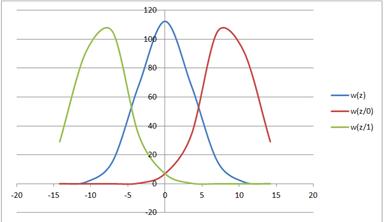 При существовании помех сигналы искажаются и для их описания приходится использовать вероятностное пространство. Сигналы с помехами описываются функциями плотности вероятности W(z/s1) и W(z/s2).