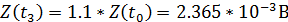 (t1)=2,059мВ, Z(t2) =1,235мВ, Z(t3) = 2,365мВ.