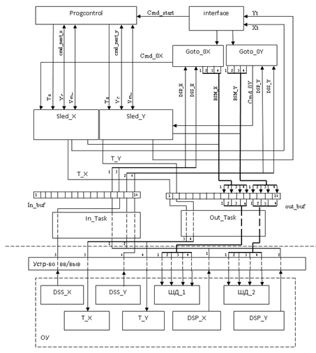 Объект управления представляет собой сложный механизм, состоящий из нескольких комплексов элементов, которые работают независимо друг от друга. Поэтому целесообразно выделить в составе единого процесса управления мехатронной системой несколько задач, независимых друг от друга, но связанных между собой каналами передачи данных.