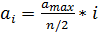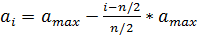 ускорение растет, пока не наступит шаг номер n/2, затем