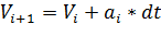 Vi+1=Vi+ai*dt |